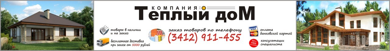 Компания Теплый дом - это обеспечение строительными материалами любого строительства в Ижевске и Удмуртии, это наличие товара на складах, доставка качественных стройматериалов точно в срок. Наши специалисты готовы проконсультировать вас по ведению любого ремонта или стройки в Ижевске. Мы способны обеспечить ваше строительство в Ижевске или Удмуртии всеми необходимыми материалами по доступным ценам.